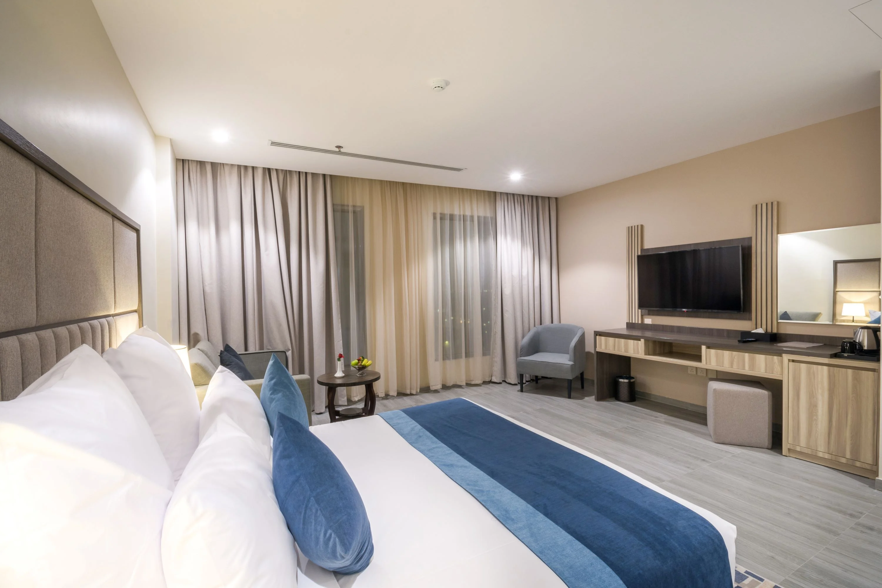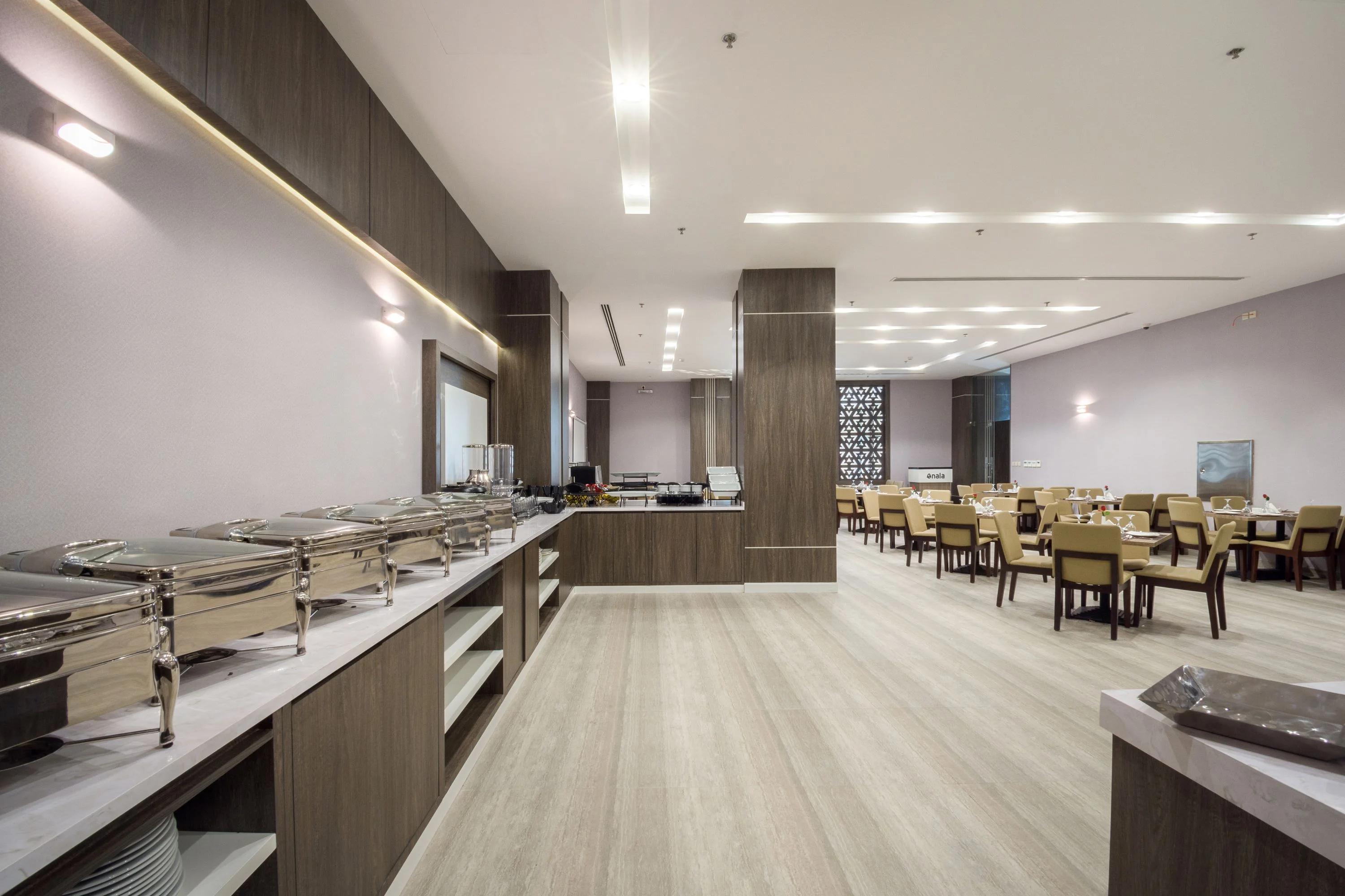 تم القيام باعمال التصاميم والتنفيذ والتركيب لاعمال تاثيث الفندق من غرف واجنخة فندقية يتميز التصميم الداخلي بالتصميم المودرن مستوحاة من احدث الطرازات في عالم الأثاث الفندقي ، مثل الخشب الدافئ والفروق الدقيقة الناعمة والمنحنيات الطبيعية، والتي، إلى جانب الاختيار الدقيق للأعمال الفنية، تؤطر أناقة قطع الأثاث: من مكتب الاستقبال، إلى الغرف والاجنحة الفندقية ، وأيضًا تصميم المطعم على احدث طراز ليعطى اطباع بالشكل العصرى والاحساس بفساحة المكان.